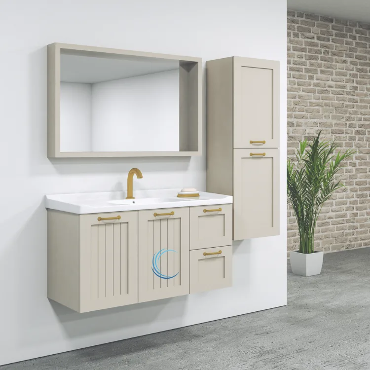 ארון אמבטיה תלוי מעוצב היילי בגוון אפוקסי משטח חרס אינטגרלי שקוע