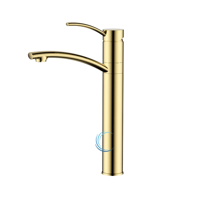 ברז פרח גבוה 8067 מעוצב לכיור מונח בגוון זהב מבריק