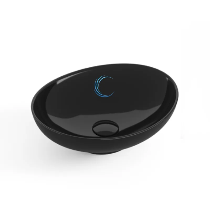 כיור מונח חרס אובלי 9450S לארון קטן 36/30/12.5 ס"מ שחור מבריק