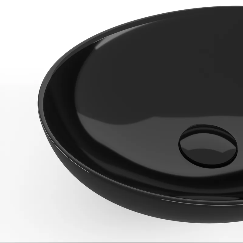 כיור חרס אובלי 9450S לארון קטן 36/30/12.5 ס"מ שחור מבריק