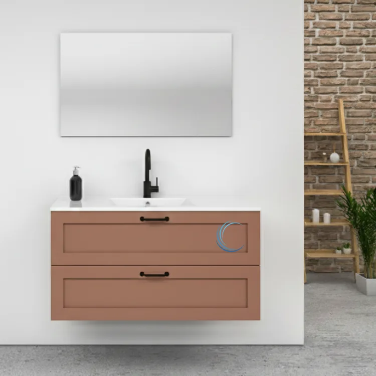 ארון אמבטיה תלוי מעוצב לואי בגוון אפוקסי משטח חרס אינטגרלי שקוע