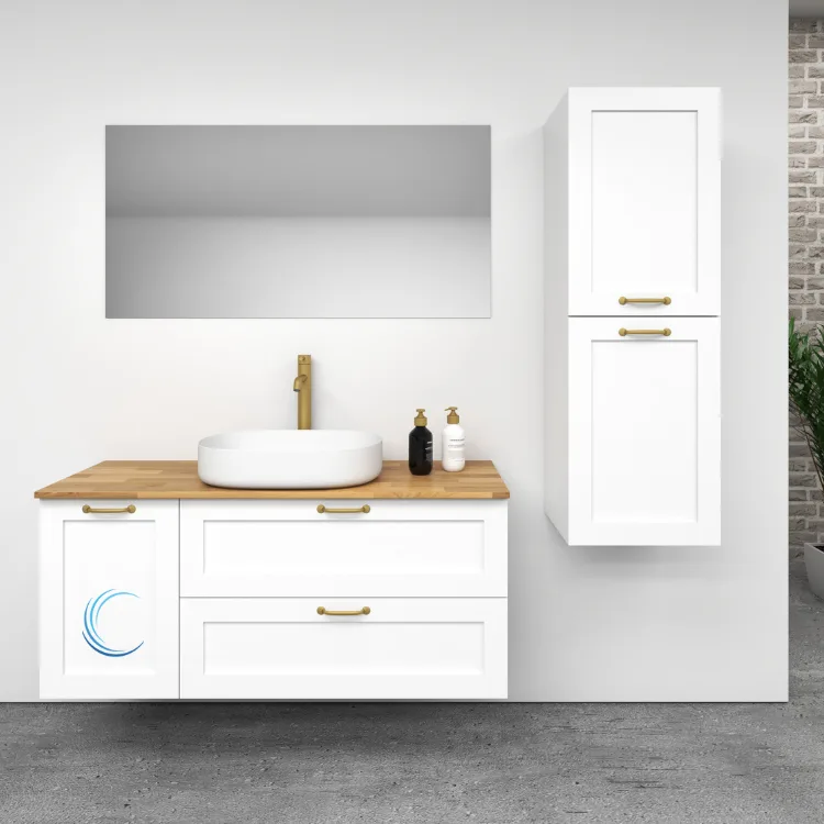 ארון אמבטיה תלוי יוקרתי דגם תמיר משטח בוצ'ר 2 ס"מ