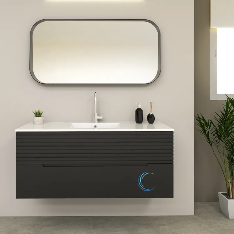 ארון אמבטיה תלוי יוקרתי נופר בגוון אפוקסי משטח חרס אינטגרלי שקוע