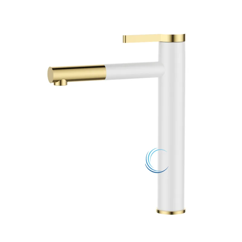ברז פרח גבוה 5403 לכיור מונח בגוון לבן מבריק בשילוב זהב מבריק