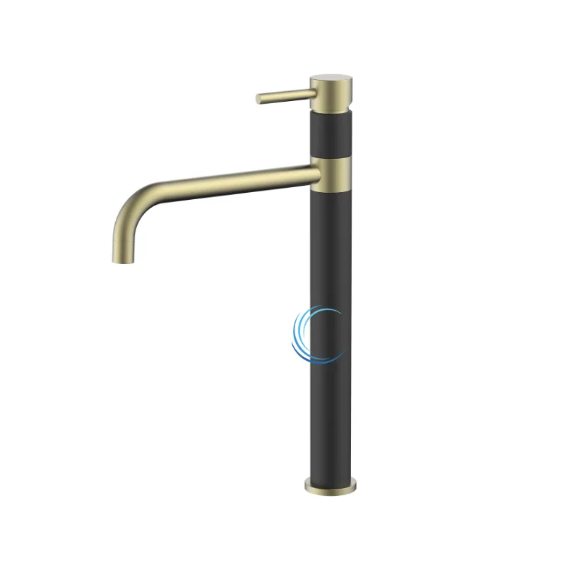 ברז פרח גבוה 1201 לכיור מונח בגוון שחור מט בשילוב פיה זהב מט ידית סטיק
