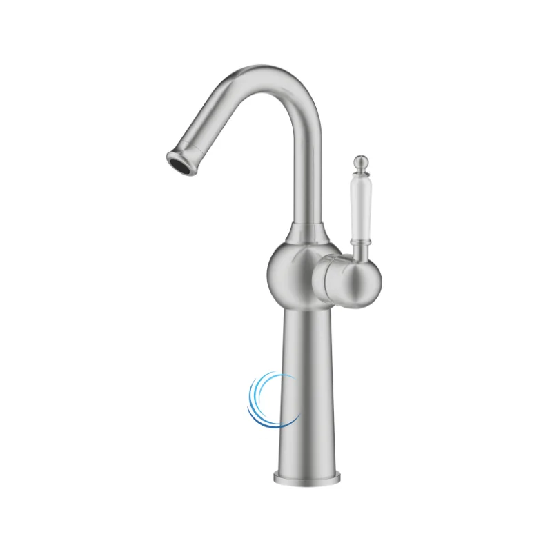 ברז פרח גבוה ברבור 6421 לכיור מונח בגוון ניקל מוברש ידית חרס לבנה