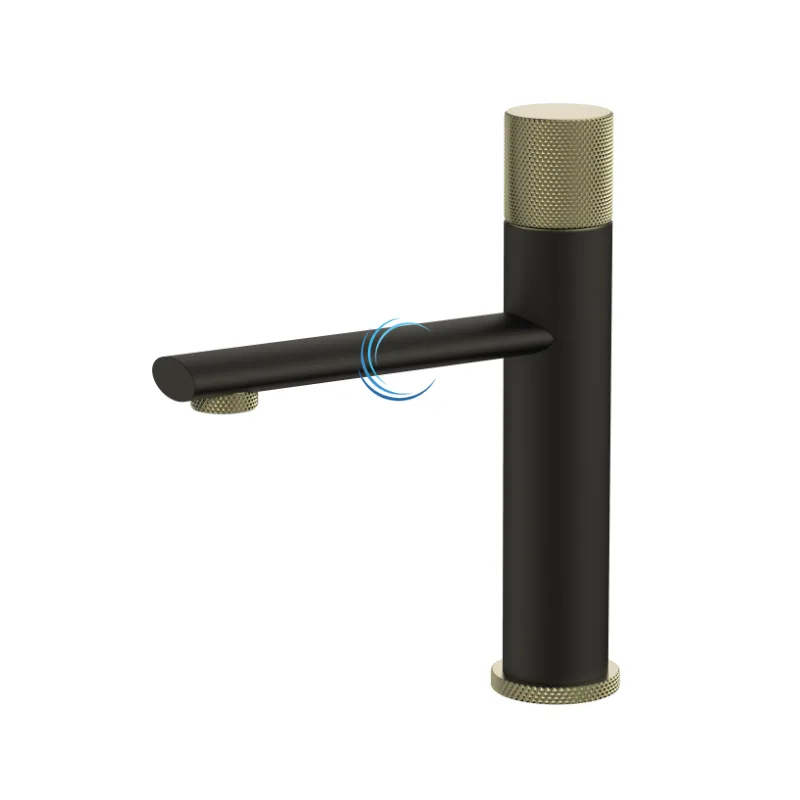 ברז פרח נמוך לכיור שקוע שחור מט בשילוב זהב מט