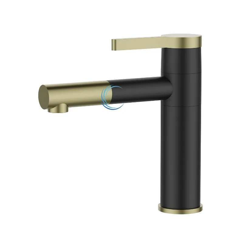 ברז פרח נמוך לכיור אינטגרלי שחור מט בשילוב זהב מט
