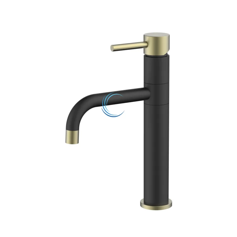 ברז נמוך לכיור שקוע שחור מט בשילוב זהב מט