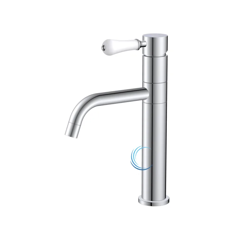 ברז נמוך לכיור שקוע מסתובב ניקל מבריק ידית חרס לבנה