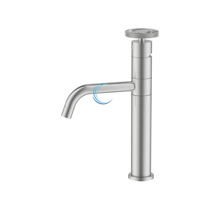 ברז נמוך לכיור שקוע מסתובב ניקל מוברש ידית שיבר