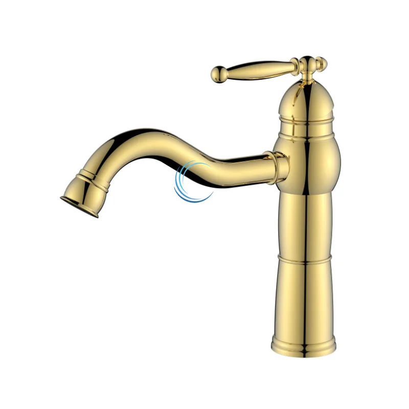 ברז פרח ענתיק לכיור אינטגרלי זהב מבריק