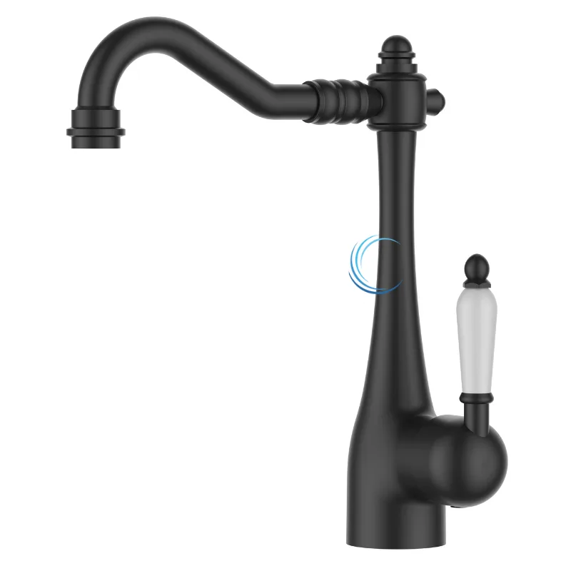 ברז פרח ענתיק לכיור שקוע שחור מט ידית חרס לבנה