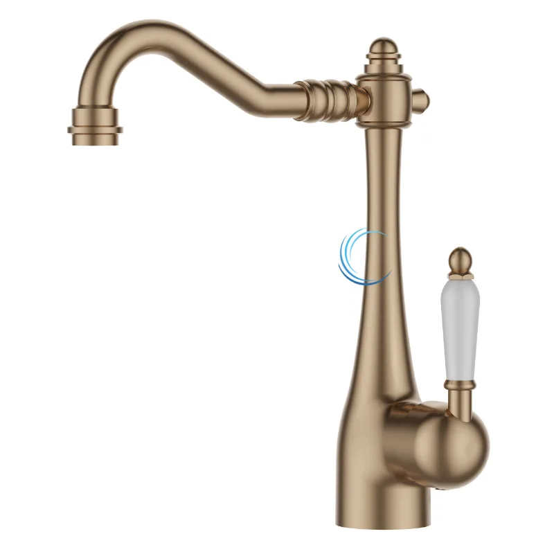 ברז פרח ענתיק לכיור שקוע רוז גולד מט ידית חרס לבנה
