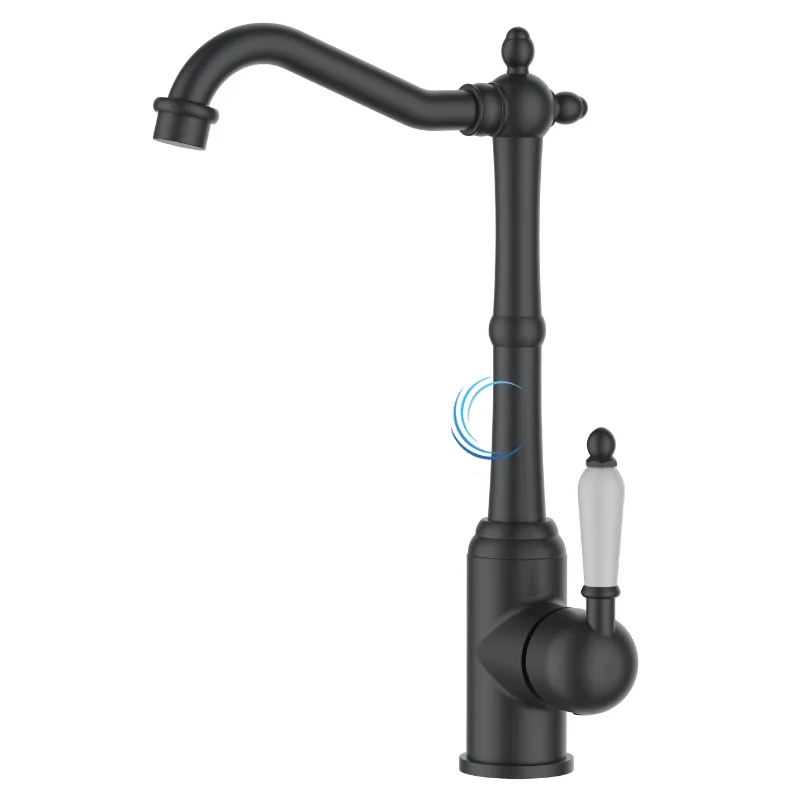 ברז פרח ענתיק לכיור שקוע שחור מט ידית חרס לבנה