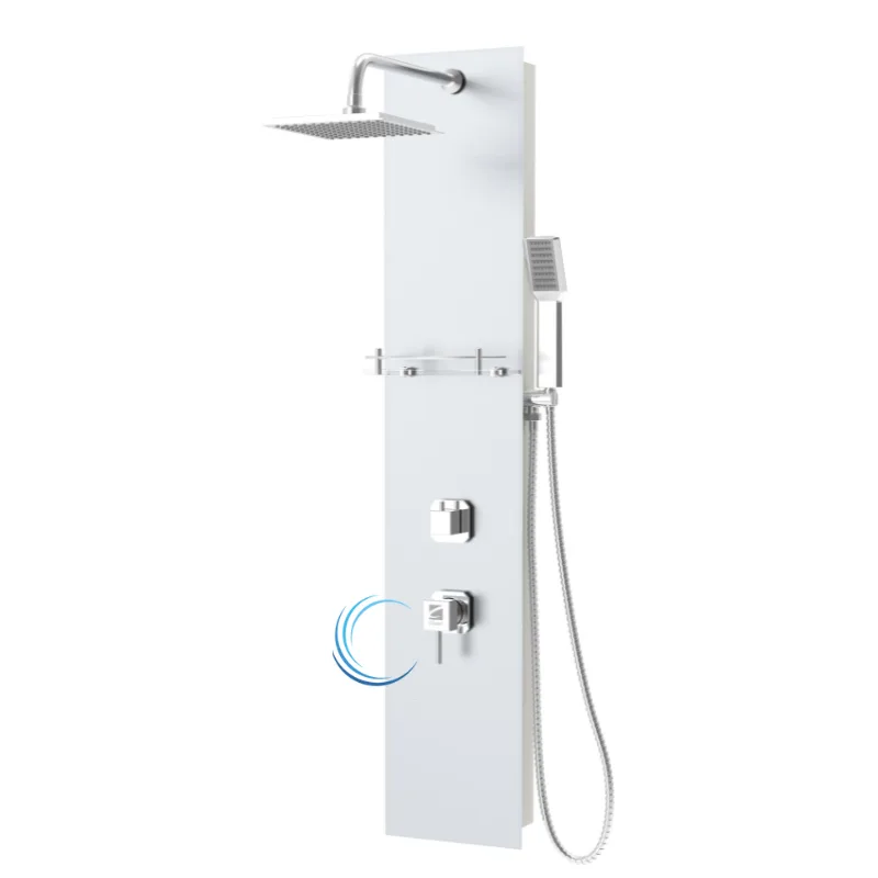 פנל רחצה זכוכית למקלחת עם אינטרפוץ מובנה לבן