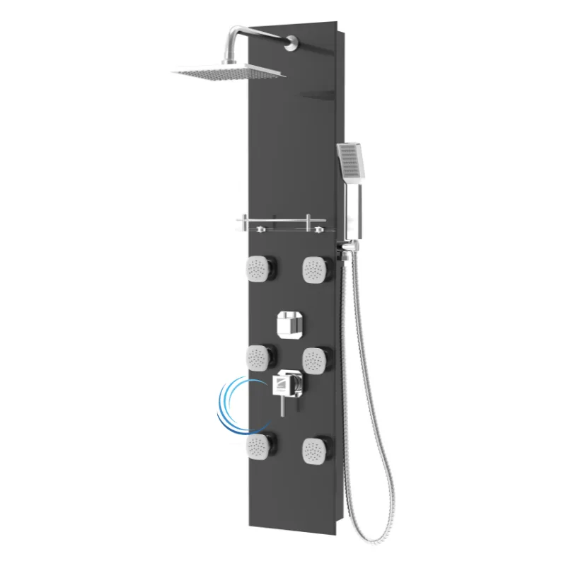 פנל פינוק זכוכית יוקרתי למקלחת עם אינטרפוץ מובנה שחור
