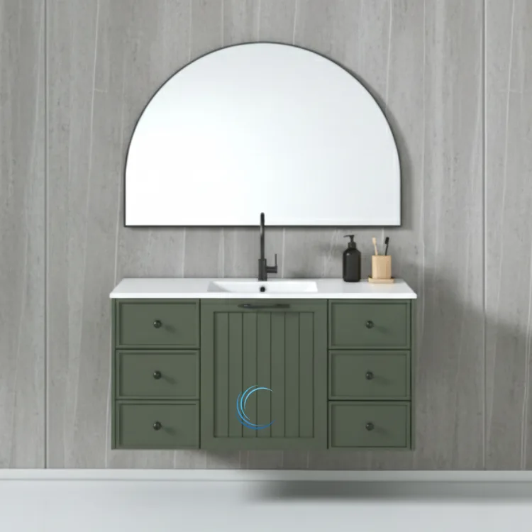 ארון אמבטיה תלוי מעוצב אגם בגוון אפוקסי משטח חרס אינטגרלי שקוע