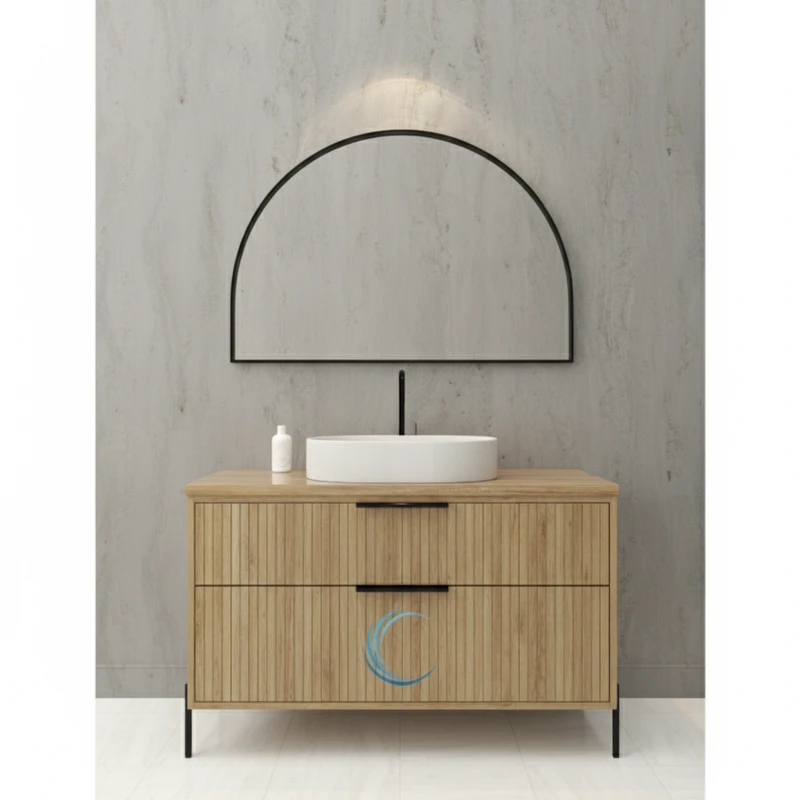 ארון אמבטיה עומד יוקרתי עץ סמואל משטח בוצ'ר או קוריאן לבן