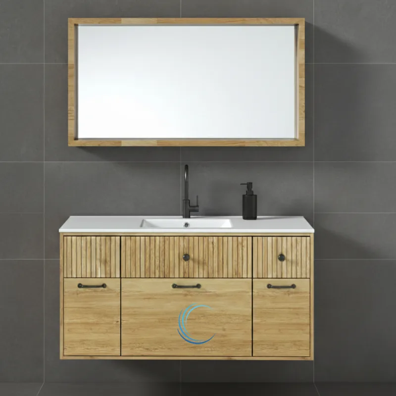 ארון אמבטיה תלוי יוקרתי עץ קרלוס משטח חרס אינטגרלי שקוע