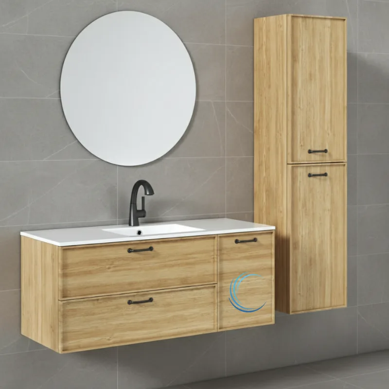 ארון אמבטיה תלוי יוקרתי עץ רנה משטח חרס אינטגרלי שקוע
