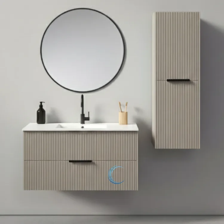 ארון אמבטיה תלוי מעוצב סופיה בגוון אפוקסי משטח חרס אינטגרלי שקוע
