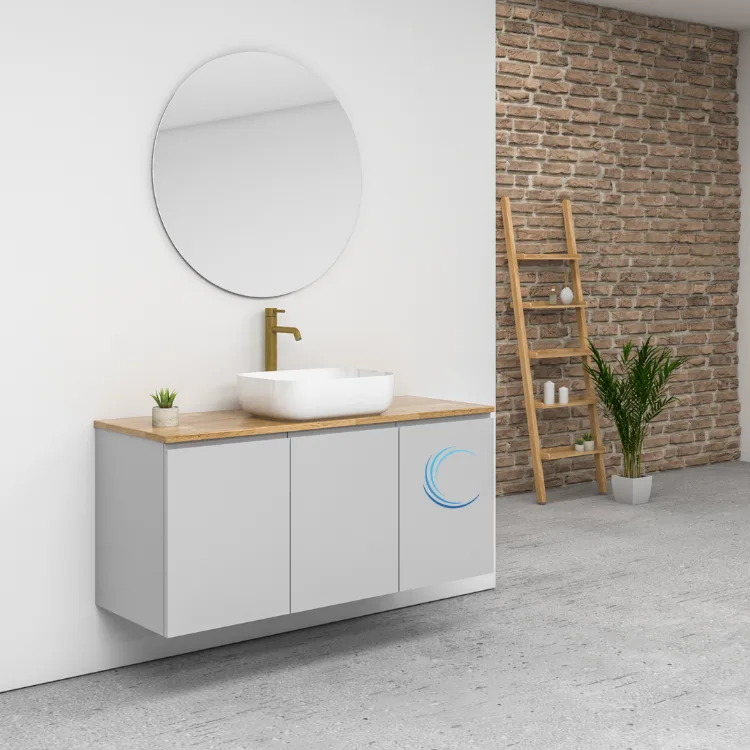 ארון אמבטיה תלוי מעוצב תהל בגוון אפוקסי משטח בוצ'ר וכיור מונח חרס