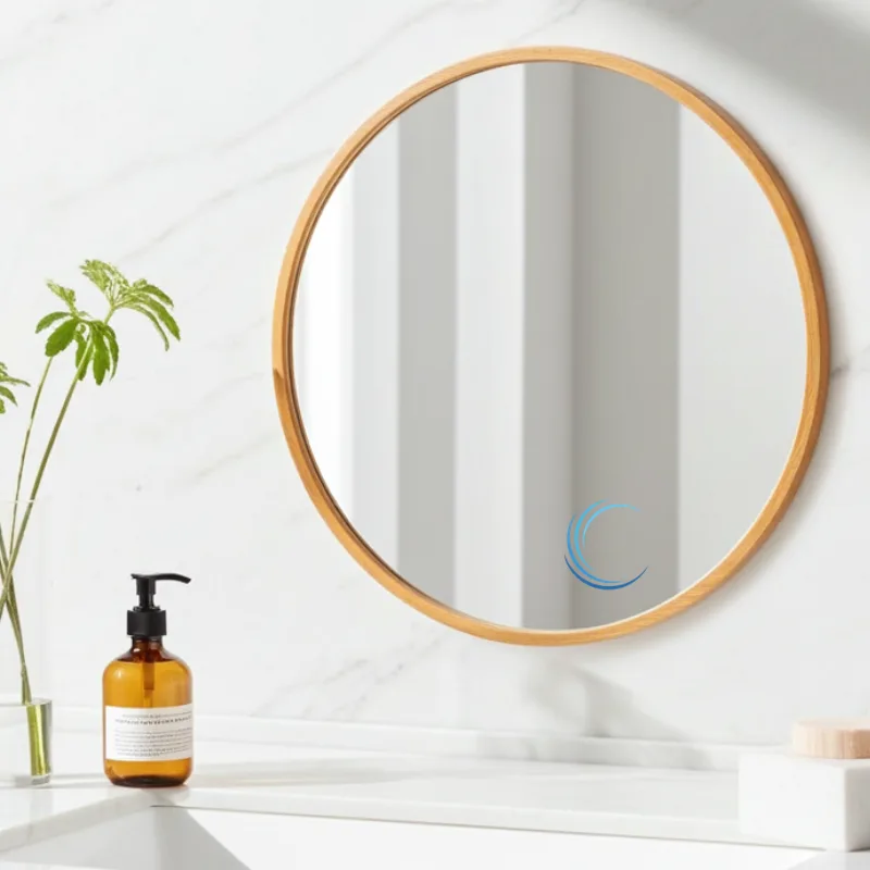 מראה עגולה עם מסגרת עץ דקה גוון אלון במידות קוטר 50, 60, 70, 80 ס"מ