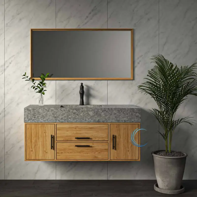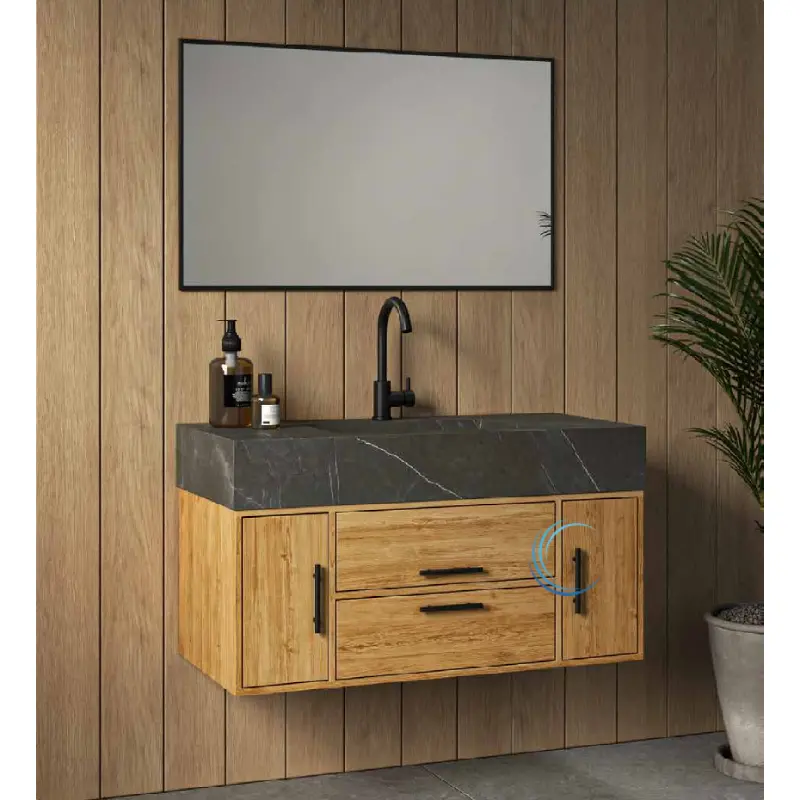 ארון אמבטיה תלוי עץ טקסס **אספקה מיידית** משטח חרס אינטגרלי לבן מבריק
