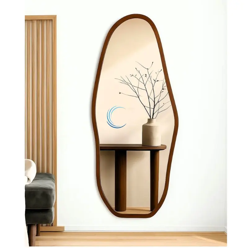מראה אמורפית עם מסגרת עץ דקה גוון אגוז במידות 170, 180 ס"מ- במלאי