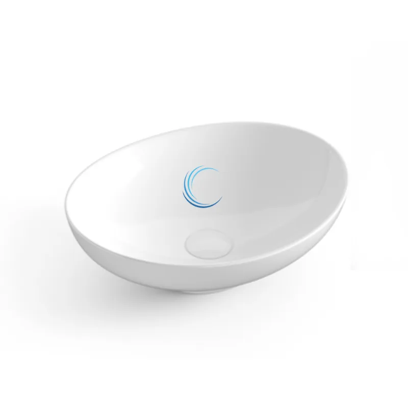 כיור חרס אובלי 9450 שפה דקה 40/33/14.5 ס"מ לבן מבריק