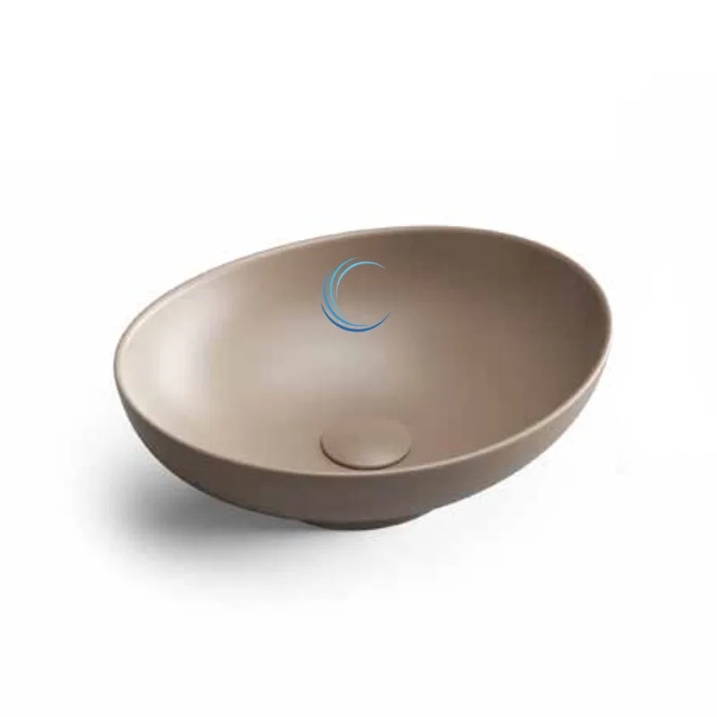 כיור מונח חרס אובלי 9450S לארון קטן 36/30/12.5 ס"מ מוקה מט