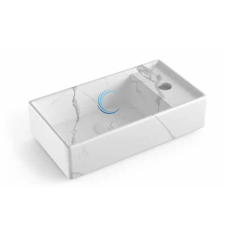 כיור מונח/תלוי חרס מלבני 9318 מעוצב 41/22.5/10 ס"מ לבן מט קלקתא