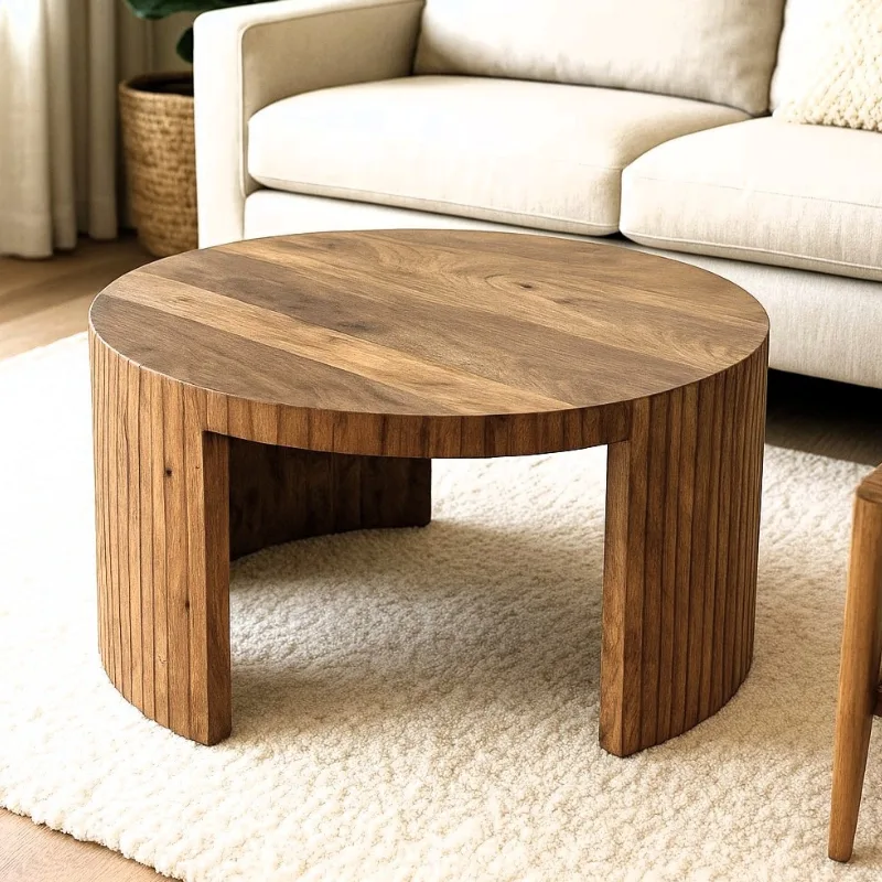 שולחן סלון עץ מלא מנגו טבעי 90/90/50