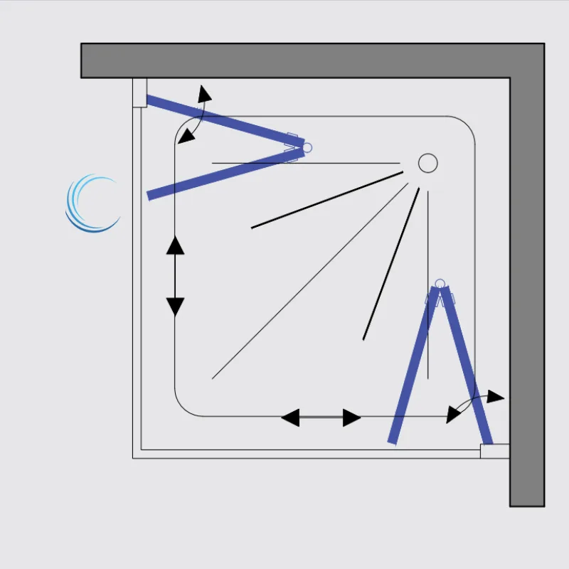 מקלחון סטנדרט פינתי הרמוניקה 6 מ"מ פרופיל ניקל מבריק 2 דלתות מתקפלות In/Out