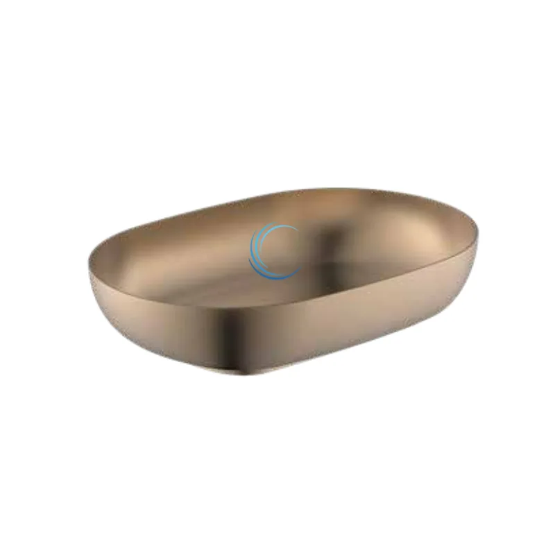 כיור מונח נירוסטה 9384 אובלי 38/56 ס"מ בגוון רוז גולג + ונטיל תואם